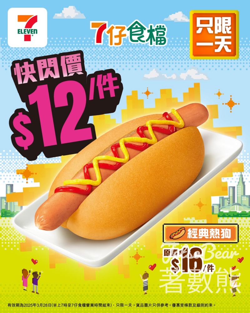 【7-Eleven 7仔食檔優惠一浪接一浪 】精明嘅FANS呢兩日可能已經喺7仔食檔享用咗着數美食啦期待一下聽日終於輪到「#經典熱狗 」啦聽日一件熱狗只需$12蚊經典熱狗配上鬆軟嘅熱狗麵包,再搭配茄汁同芥末,簡直Perfect Match啊