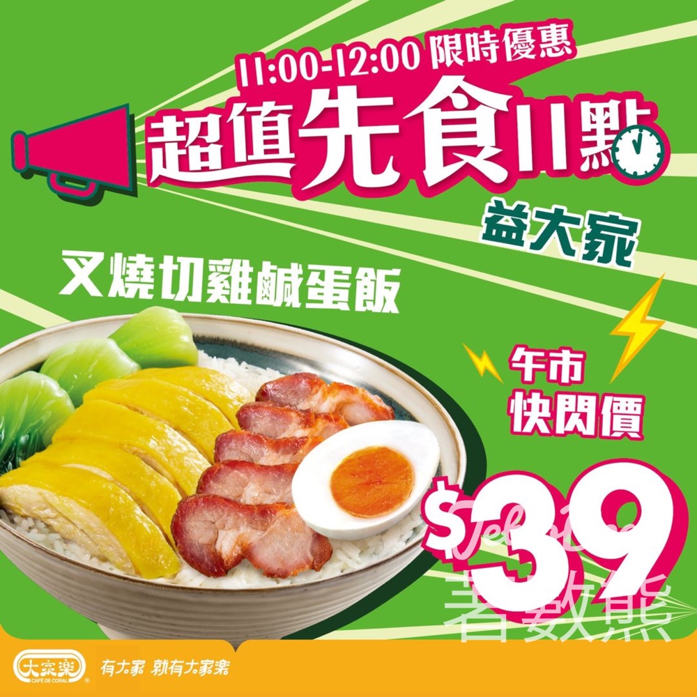 【午市先食11點 | $ 39大家樂叉燒切雞鹹蛋飯】