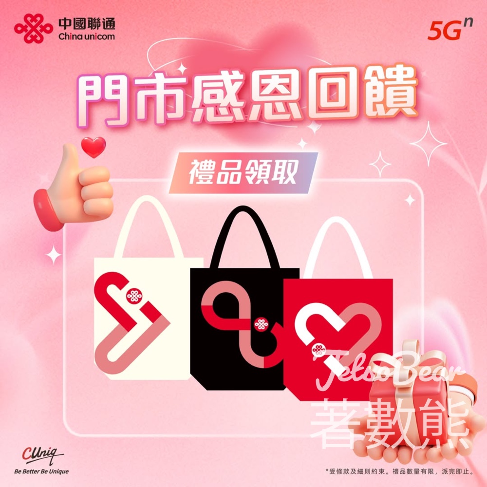 中國聯通香港CUniq全線門市 免費換領 精美環保袋 Jetso Bear更新時間:2024-11-302024-11-30 【來CUniq門市,免費好禮等你拿!】CUniq感恩回饋,即日起,帶著你的家人朋友前往中國聯通香港CUniq全線門市,即可免費領取禮品(精美環保袋一個),行街買嘢都好方便,仲可以一齊保護地球呀!*受相關條款及細則約束。禮品數量有限,派完即止。中國聯通(香港)運營有限公司保留最終解釋權。門市地址 >圖片及資料來源:中國聯通中國聯通香港CUniq全線門市 免費換領 精美環保袋 was last modified: November 30th, 2024 by Jetso BearJetso BearCreated: 2024-11-26