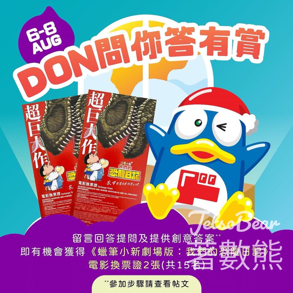 蠟筆小新 最新電影《#蠟筆小新劇場版:我們的恐龍日記》將於8.9上映,各位DON粉依照參加辦法並回答以下問題並發揮創意,即有機會得到《蠟筆小新劇場版:我們的恐龍日記》換票證 2 張(名額:15個)