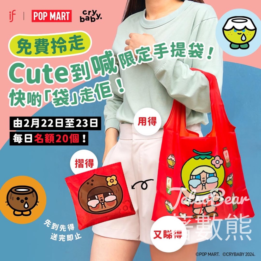 【CRYBABY粉必搶!免費「袋」走Cute到喊購物袋~】細細聲話畀鍾意CRYBABY嘅粉絲們知,IF × POP MART × CRYBABY 別注版輕便手提袋,有得免費換領,要點部署?