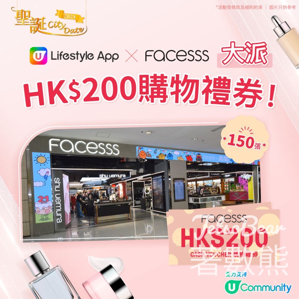 想來一場浪漫嘅《聖誕City Date》就緊係要扮靚靚示人啦!U Lifestyle x Facesss為您送上HK$200購物現金券~無論係想送禮物畀人定自用,去Facesss一次過選購護膚品、化妝品、香水、身體或頭髮護理產品就夠晒方便!