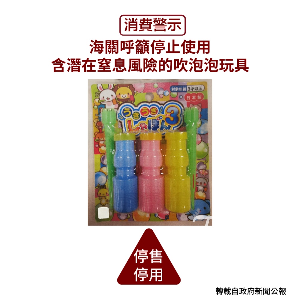【消費警示】停止使用含潛在窒息風險的吹泡泡玩具