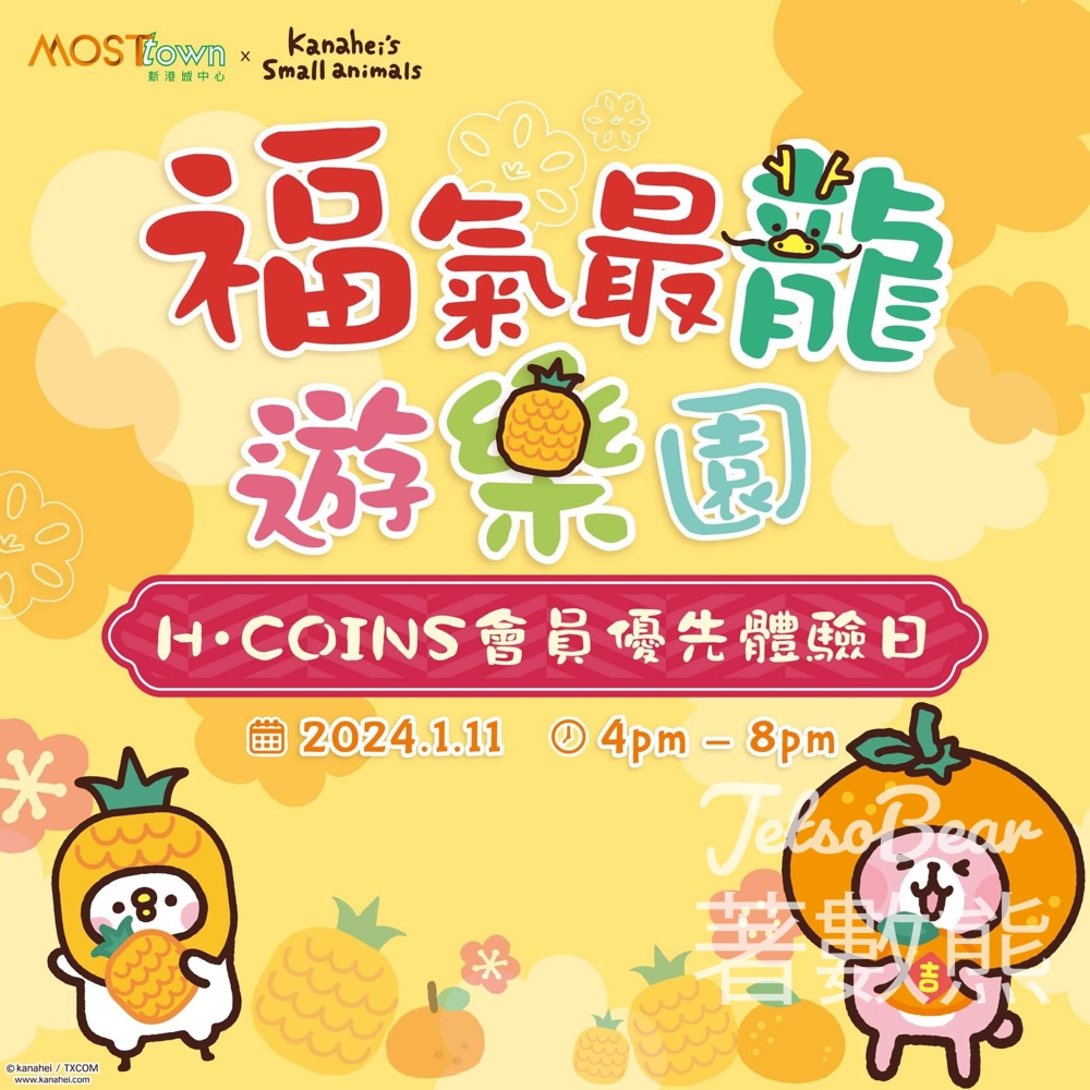 MOSTown新港城中心首度聯乘日本高人氣角色P助、粉紅兔兔及一眾朋友,打造「福氣最『龍』 遊樂園」,而喺1月11日,H•COINS會員仲可以優先入場,同以全新龍年造型亮相嘅P助及粉紅兔 兔一齊打卡!