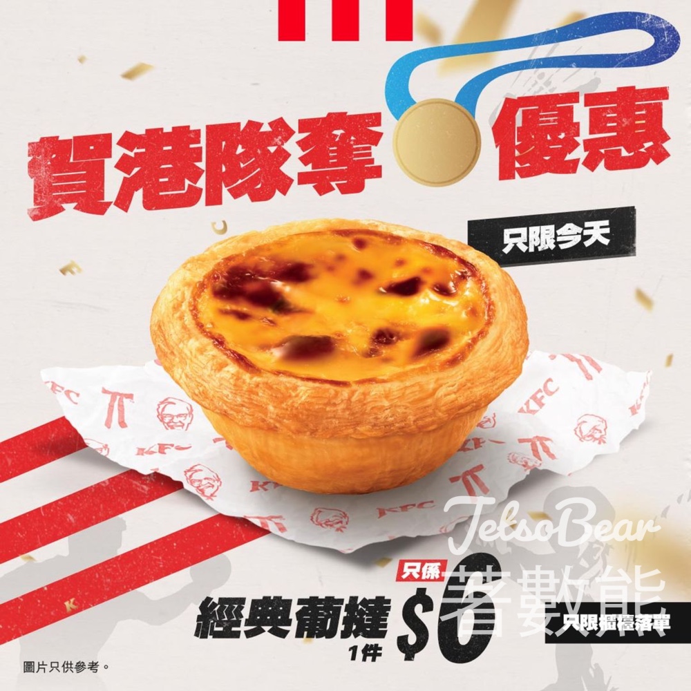 恭喜江旻憓於女子重劍個人賽勇奪金牌!港隊好耶!!!KFC 忍唔住要出手一同慶賀啦!今日(28/7)推出限時優惠 – $6就可以買到1件經典葡撻 (原價: $9.5起),keep 住個勢繼續為港隊運動員打氣,齊齊分享雙重喜悅!