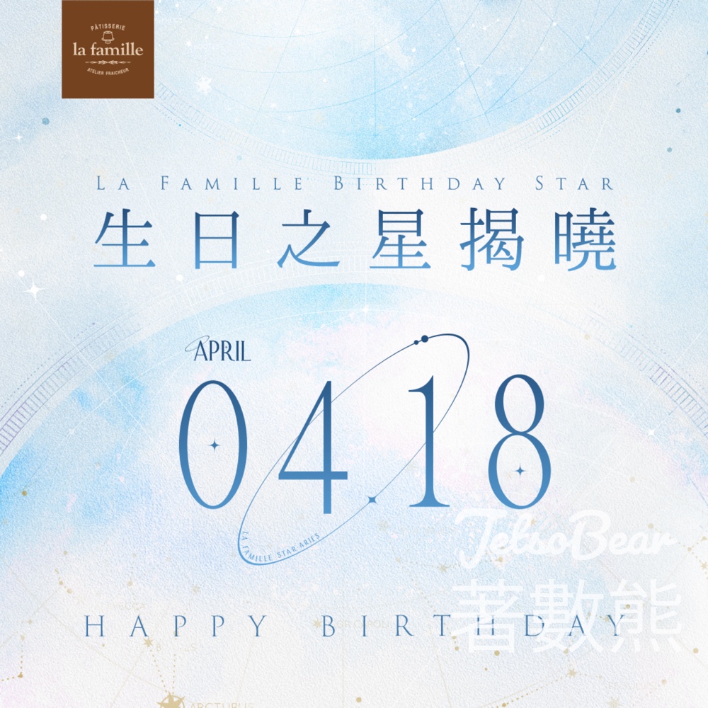 本月La Famille 生日之星是4月18日,當天生日的你有機會免費換取戚風小蛋糕一件!網上登記活動將於4月8日開放登記!