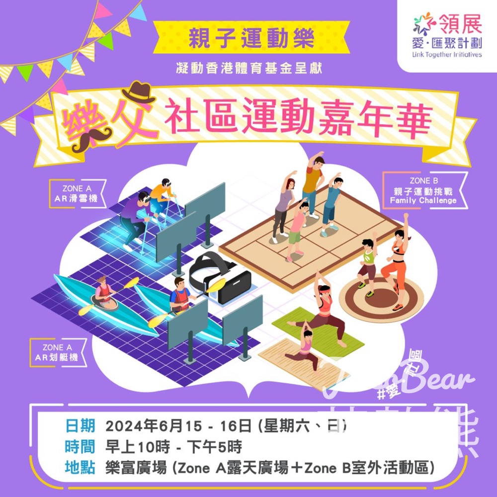 父親節齊享親子運動樂!領展 「愛‧匯聚計劃」 贊助凝動香港體育基金,於今年父親節在樂富廣場舉行一連兩日的 樂 「父」社區嘉年華。父親可與孩子一同體驗和挑戰不同運動,競技一番,一決勝「父」!想參加的話記得馬上報名,出席的家庭仲有機會獲得精美獎品呢