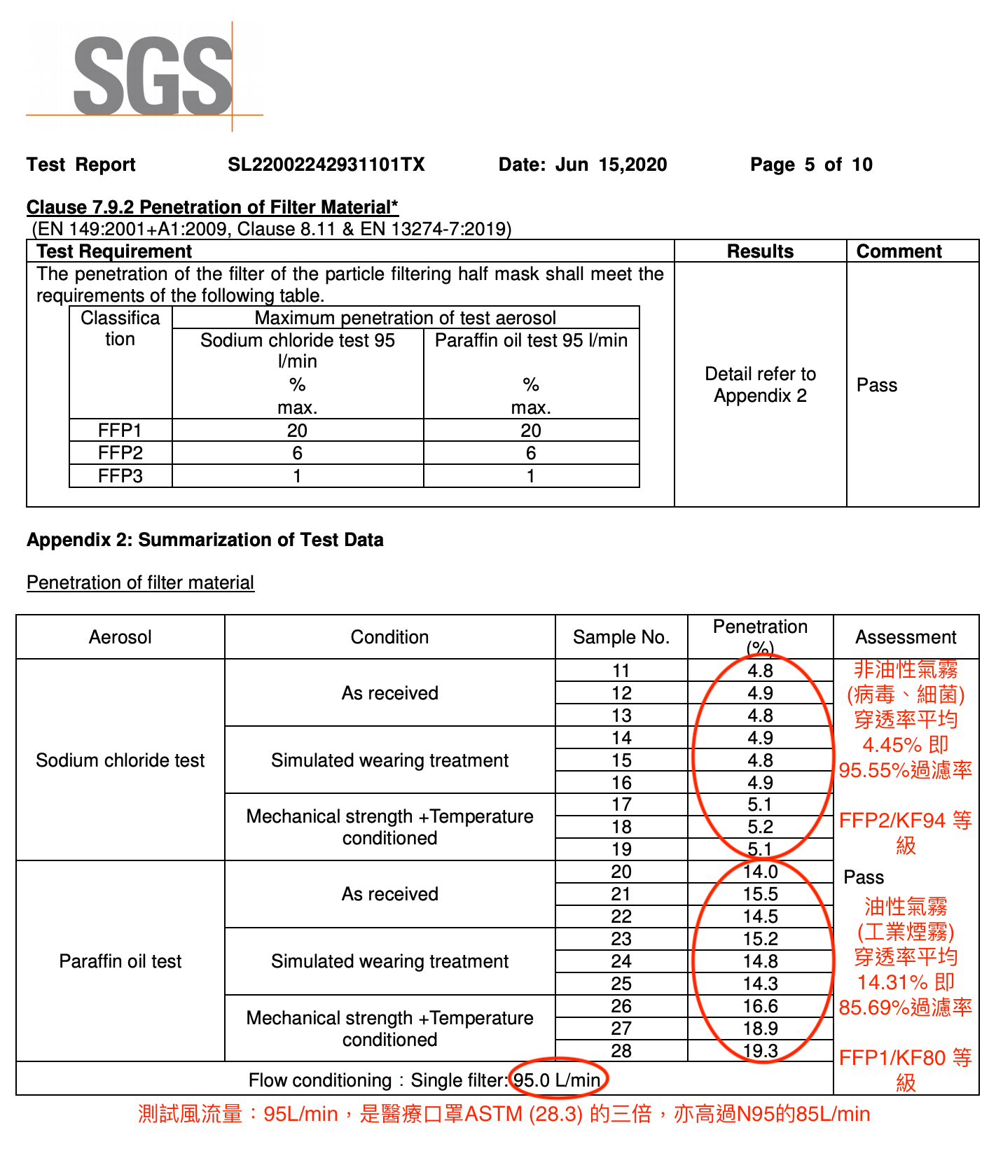 貼面氣密度: 85% – 是外科口罩的三倍以上