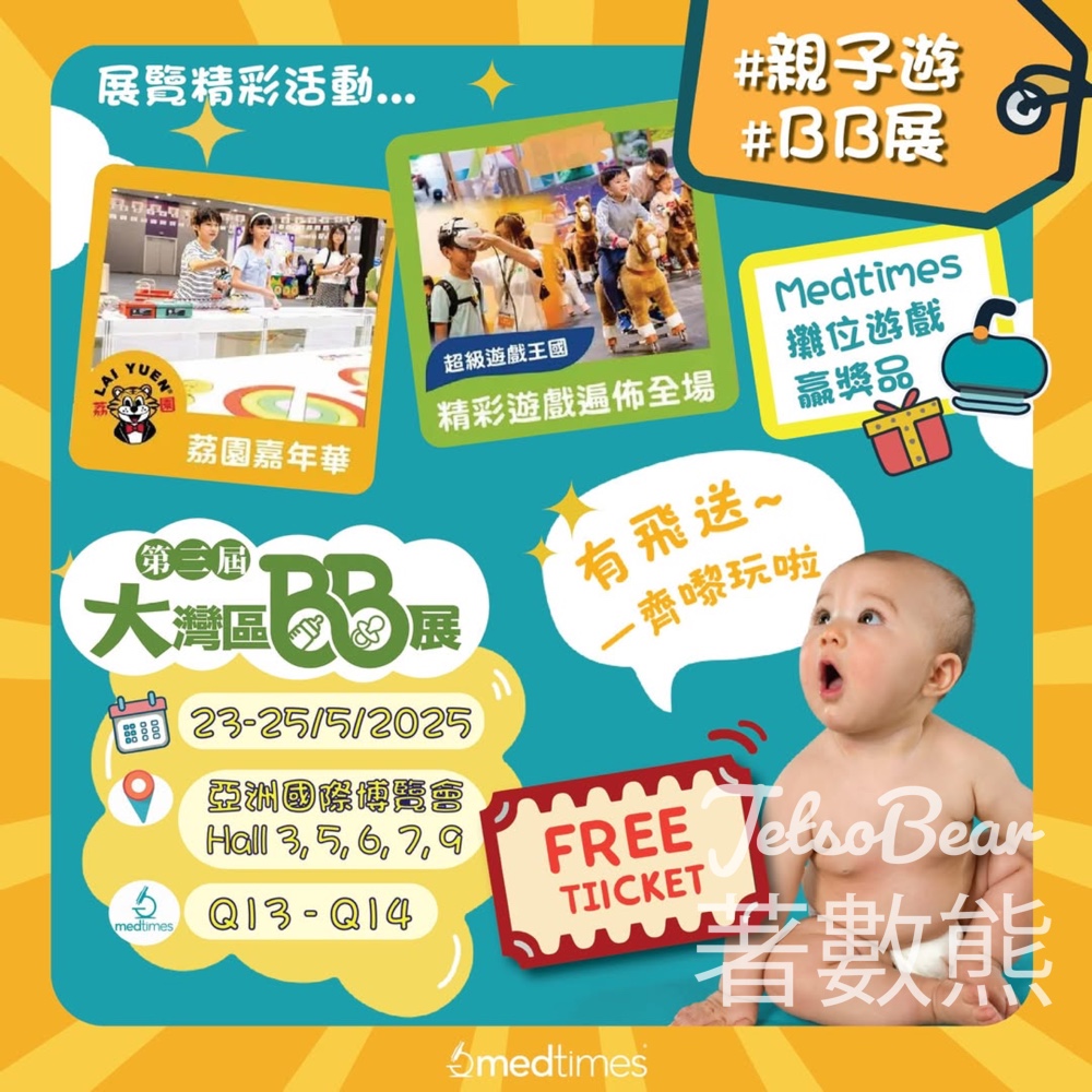 天氣開始熱,一家大細唔知去邊到好?下個Weekend不如嚟「大灣區BB展」@「兒童書展暨超級親子用品展」,由5月23至25日一連3日於亞洲國際博覽館舉行,現場設有「親子BB按摩工作坊」、「VR遊戲區」、「兒童騎馬樂園」、「荔園嘉年華」等精彩活動,仲齊集人氣嬰幼兒公司,當然唔少得 Medtimes至抵兒童疫苗優惠 及 即場攤位遊戲
