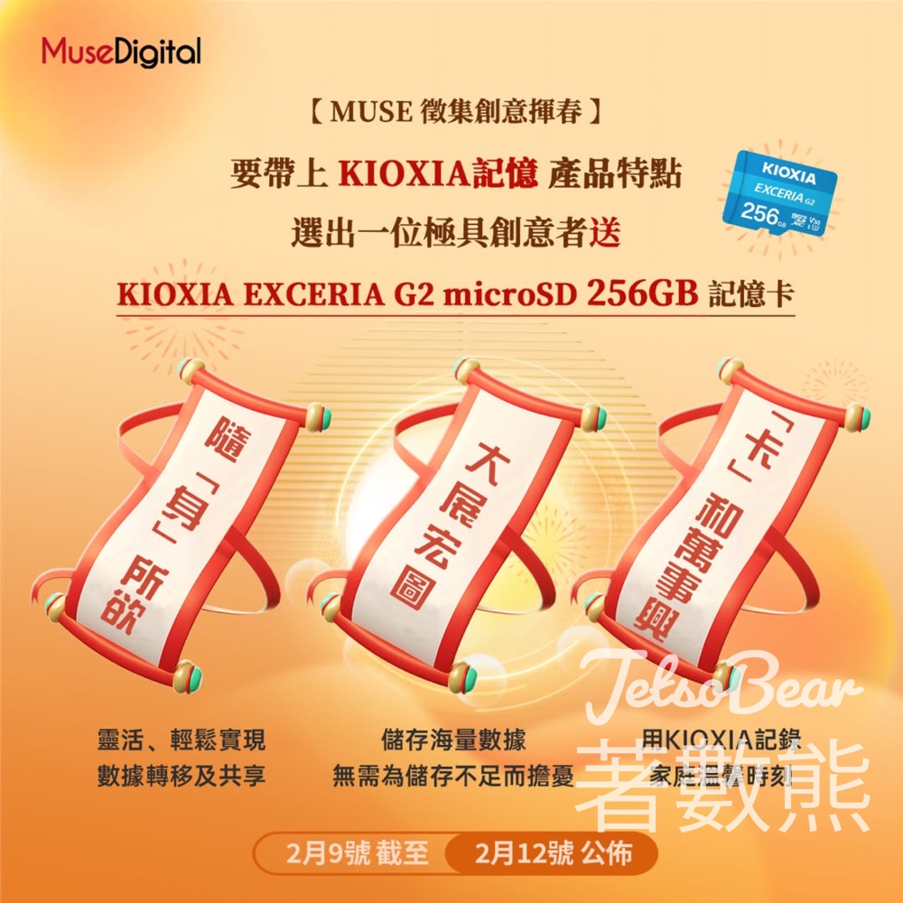 大家快啲嚟參與啦,用你嘅創意為農曆新年添色,仲有機會拎到 KIOXIA EXCERIA G2 microSD記憶卡!等我哋期待各位精彩創作,為農曆新年添福添好運!