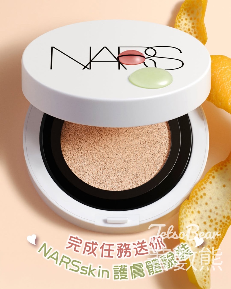 【集化妝護膚功能氣墊粉底 完成任務即可取NARS體驗裝】NARS全新推出超養膚LIGHT REFLECTING亮肌精華氣墊粉底SPF 50+/PA++!佢嘅精華配方唔單止令肌膚展現亮澤並改善透亮度,而且帶嚟強效保濕長達24小時,締造更明亮同柔滑嘅妝容!