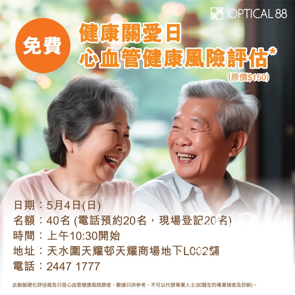 【眼鏡88 天水圍天耀商場分店「健康關愛日」立即預約免費體驗心血管風險評估*】