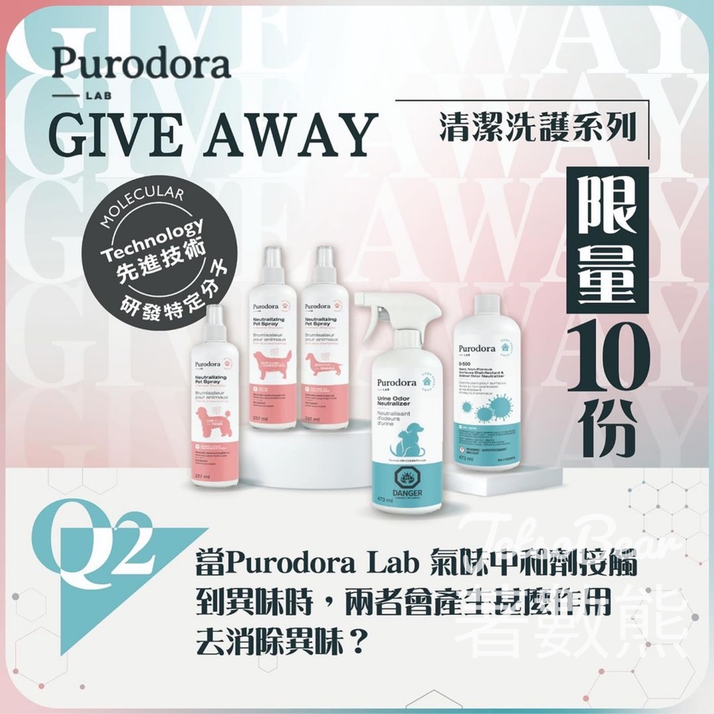 得獎者將經由Pet Line 寵寵線隨機抽取,名額共 𝟏𝟎 個;每人均可獲得「Purodora Lab 清潔洗護系列限量禮品包🫧」套裝一包 。