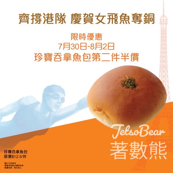 何詩蓓奪銅 美心吞那魚包 第二件半價 - Jetso Bear