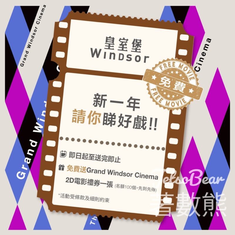 皇室堡 免費贈送 100張 Grand Windsor Cinema 2D電影禮券 - Jetso Bear