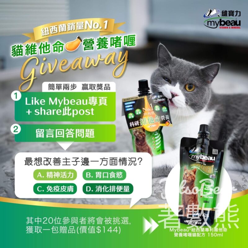 Mybeau #有獎遊戲 送20份 Mybeau®紐西蘭專利維他命營養啫喱貓配方