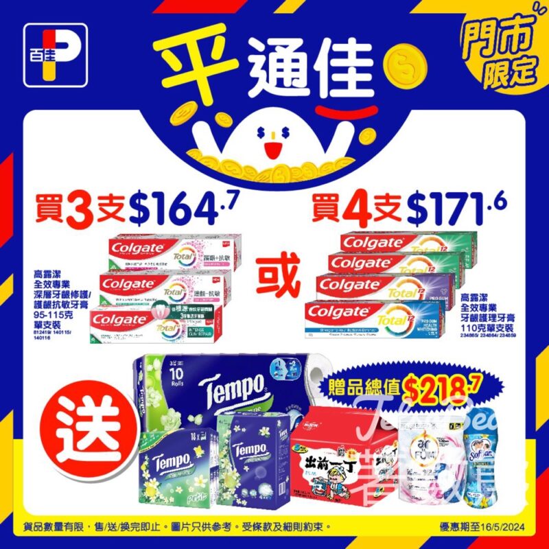 百佳 高露潔牙膏送高達價值$218.7贈品
