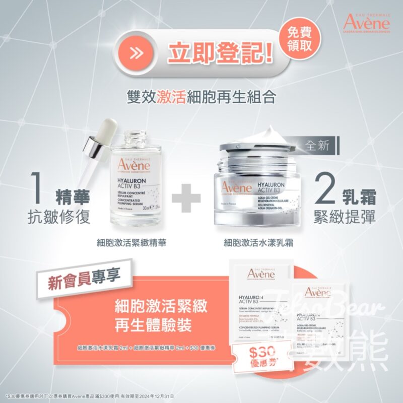免費領取 Avène 細胞激活緊緻再生體驗裝 - Jetso Bear