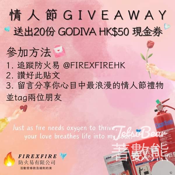 防火易 #有獎遊戲 送20份 GODIVA HK$50 現金券