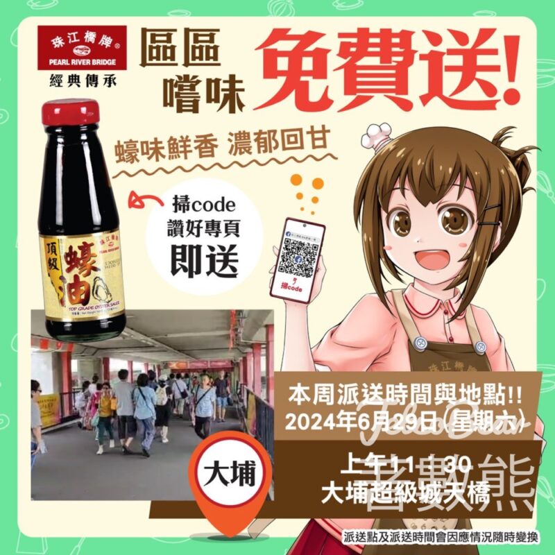 荃灣 免費派發 珠江橋牌頂級蠔油試食裝 - Jetso Bear