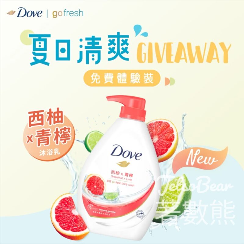 免費贈送 960份 Dove Go Fresh 「西柚 X 青檸沐浴乳」45g 體驗裝 - Jetso Bear