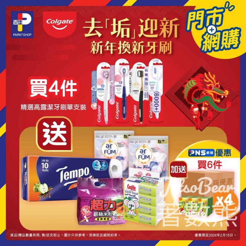 百佳買高露潔牙膏 送超過$197.6贈品 - Jetso Bear