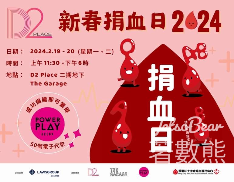 D2 Place 紅十字會流動捐血站 成功捐血 送PowerPlay Arena 50個電子代幣 - Jetso Bear