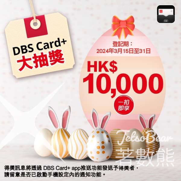 DBS Card+ app4月「月月好賞」大抽獎 贏取高達HK$10,000 「一扣即享」 - Jetso Bear