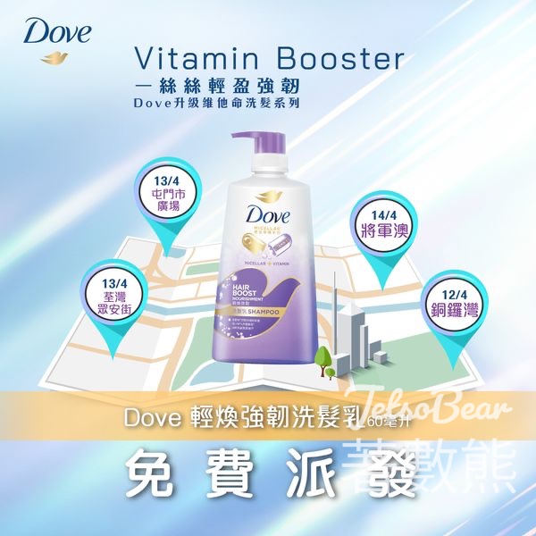 免費派發 Dove Vitamin Booster輕煥強韌洗髮乳試用裝 - Jetso Bear