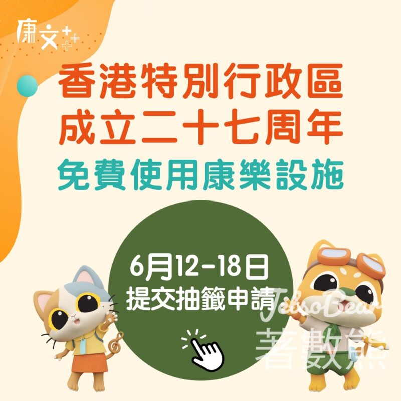 回歸28周年 免費使用康文署多項室內、戶外康樂設施 - Jetso Bear