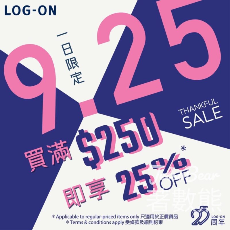 LOG-ON全線買滿$250即享25%OFF