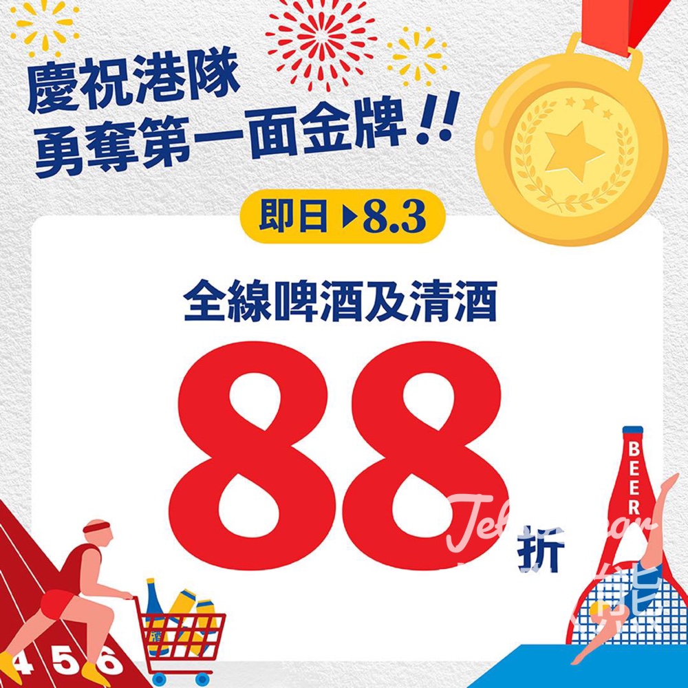 恭賀香港運動員於本屆巴黎奧運勇奪第一面金牌!開心事梗係要一齊慶祝,由即日起至8月3日,於UNY購買全線啤酒及清酒享88折!即刻嚟店內入手,熱烈慶祝之餘於接住落嚟嘅賽事繼續為香港運動員打氣!
