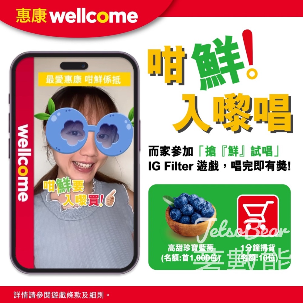 2 . 玩「搶『鮮』試唱」 IG Filter 遊戲唱出歌詞再標籤 @hkwellcome 及 #惠康 #Wellcome #AllFreshForYou, 並於Instagram發佈帖文或限時動態