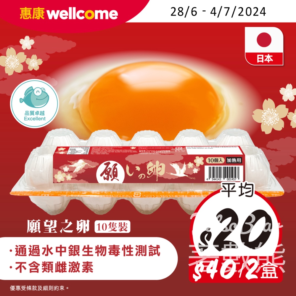 限時優惠!依家嚟惠康只需$40就可以買到2盒「願望之卵」(10隻裝),平均都係$20/盒!仲唔快啲嚟惠康掃貨買多幾盒!